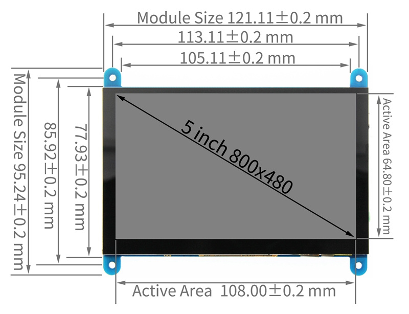 樹莓派5寸顯示屏B款800*480分辯率380亮度HDMI接口電容觸摸